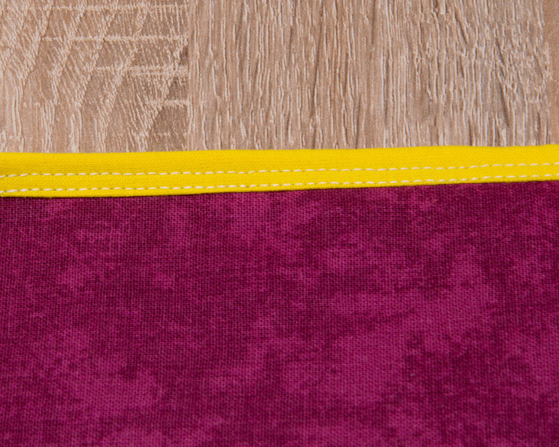 7. Zdvihnite pätku a vložte látku zľava do lemovky.