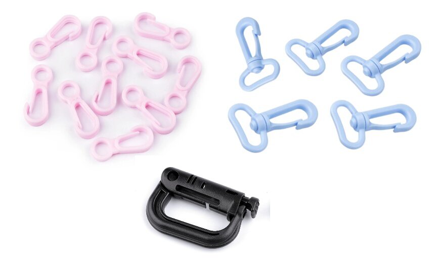Plastová karabína rôznych farieb a rozmerov. Karabínu využijete na zavesenie na kľúče, kočík, aktovku a mnoho ďalšieho.
