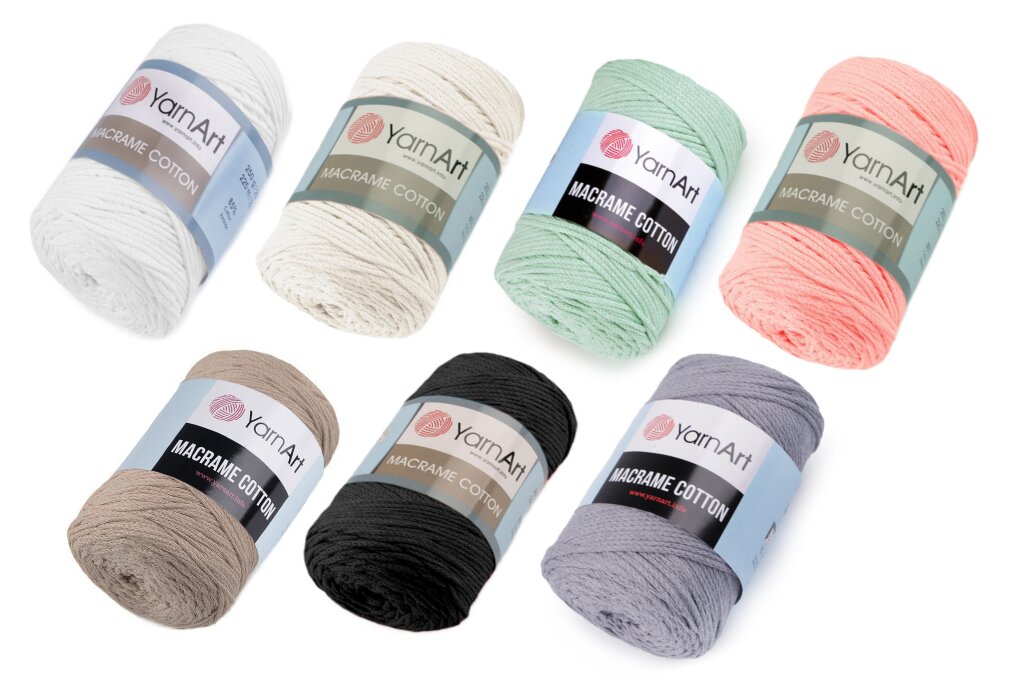 Priadza Macrame Cotton je typ splietanej šnúry, ktorá pripomína špagát. Je pevná a odolná a drží tvar. Je skvelá na pletenie, háčkovanie a výrobu dekorácií i módnych doplnkov ako napr. tašky, lapače snov, košíky, koberčeky, pufy (taburetov).