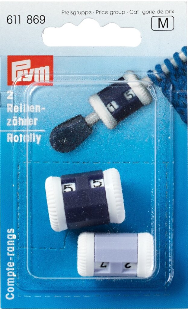 Počítadlo radov pre pletenie - PRYM (2 veľkosti) je pomocník na určenie počtu radov pri pletení. 2 veľkosti počítadiel pre tenké a silné ihlice.