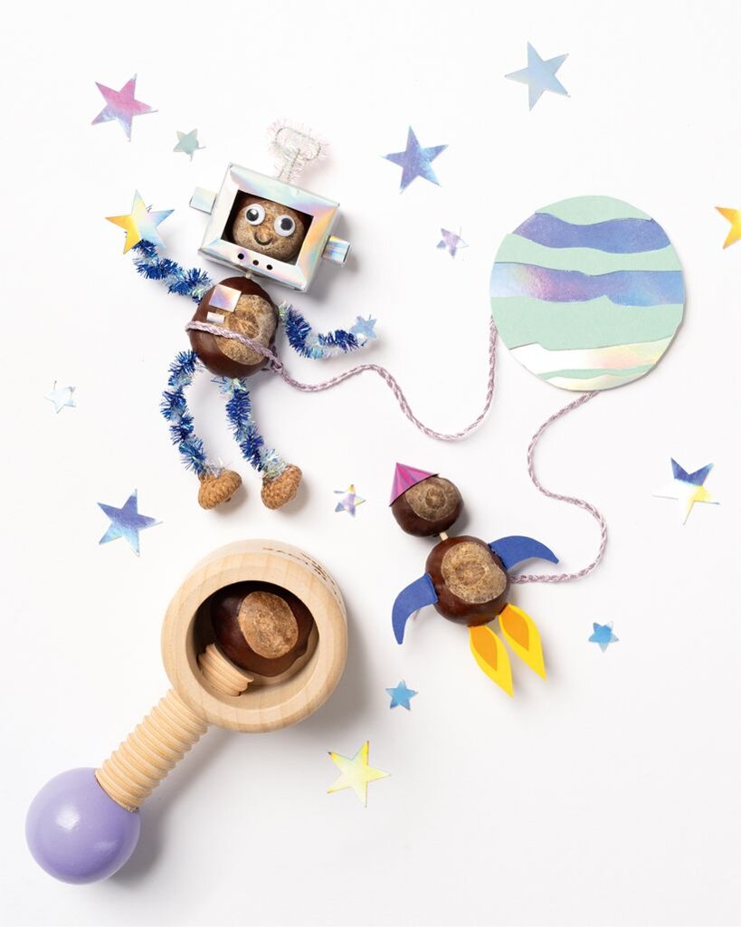 Skvelá sada obsahujúca pomôcku na dierovanie gaštanov, nebozez a 100 kusov tvrdých špáradiel pre ľahké a zábavné vytváranie zvieratiek a postavičiek z gaštanov a žaluďov.