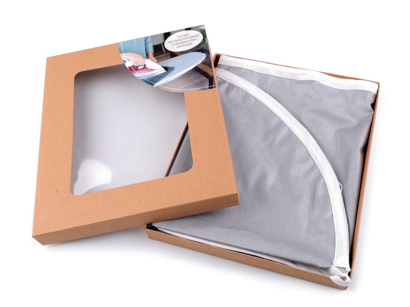 Kvalitný žehliaci poťah, ktorý je z hornej strany opatrený hliníkovým záterom, ten je odolný proti vysokým teplotám a dobre odráža teplo. Poťah má po obvode všitú šnúru, pomocou ktorej sa poťah na žehliacej doske pekne vypne po celej dĺžke aj šírke. Šnúra sa sťahuje pomocou brzdičky. Poťah je balený v darčekovej krabičke s priehľadom.