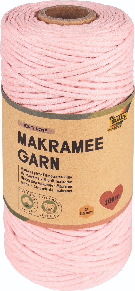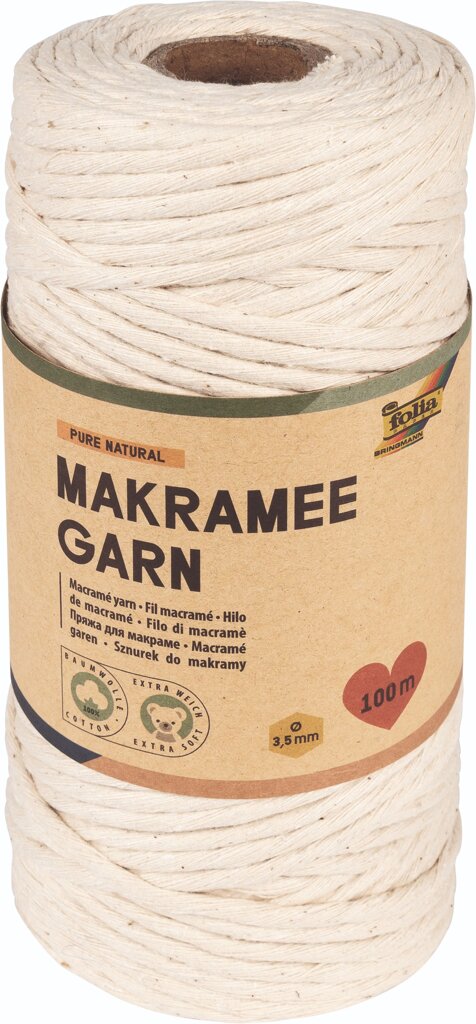 Veľmi jemná, mäkká a pevná priadza Macramé na vyrábanie dekorácií technikou Macramé. Priadza je zo 100% bavlny.