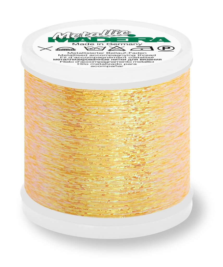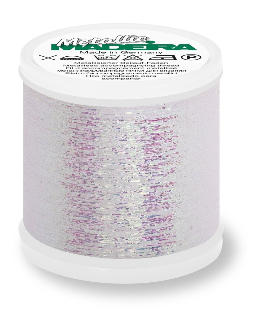 Niť Madeira Metallic 50 je jemná metalizovaná niť, ktorá sa pripletá spolu s hlavnou priadzou, a to ručne aj strojovo. Dúhovo pastelové farby vytvárajú trblietavé efekty. Opálový trblietavý lesk farieb vytvára rozmanitý vzor a celkovo pleteninu zvýrazňuje. Niť využijete pri pletení aj háčkovanie.
