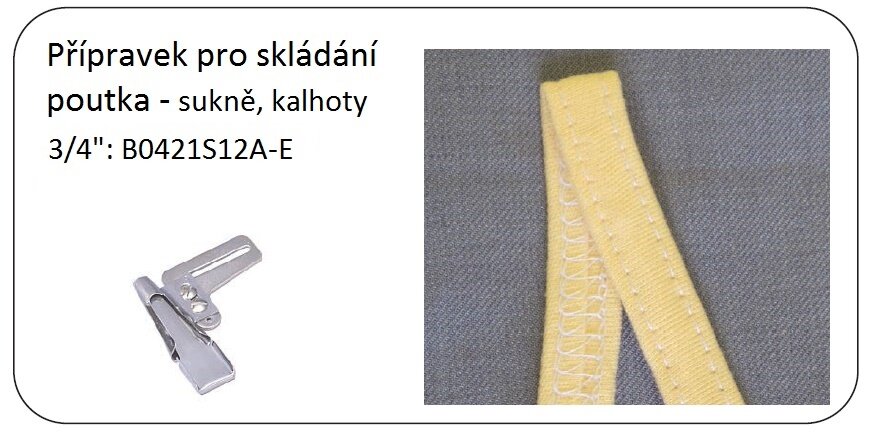 Prípravok na skladanie pútka 3/4" = 19 mm - Baby Lock BLCS2, Sashiko, Desire, Ovation, Gloria, Euphoria, Primo je praktický zakladač na skladanie pútka na sukne nohavice atď., ktorý je možné dokúpiť pre c/overlocky Baby Lock Desire BLE 5, Evol