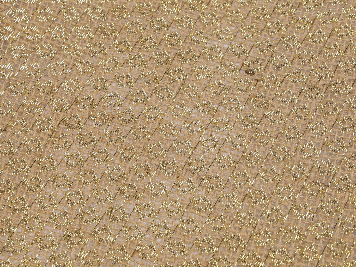 Juta s lurexom je materiál, ktorý je pevný, kvalitný a pretkaný zlatým lurexovým vláknom. Juta s lurexom má obšité okraje. Jedná sa o prírodný materiál, ktorý krásne vynikne v kombinácii s ostatnými prírodnými materiálmi. Juta s lurexom sa bude krásne vynímať ako behúň, prestieranie. Je vhodná na šitie obrusov, prestierania, závesov, poťahov, vankúšov, dekoračných vrecúšok. Juta je skvelá aj pre aranžovanie kvetinových väzieb, kvetináčov a tvorenie rôznych dekorácií. Juta Vám doma vytvorí nádych country, provencie alebo etno štýlu. Keď jutu obšijete bielou čipkou, získa nádych vintage štýlu.