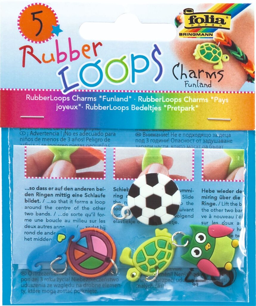 Zábavné přívěsky skvělé pro doplnění gumiček Rubber Loops pro výrobu náramků, řetízků a jiných dekoračních předmětů. Přívěsky můžete využít také jako dekoraci na zip batohu, mikiny, bundy a jiných kousků oblečení či doplňků. Přívěsky jsou z měkké, lehké a příjemné gumy. Přívěsky Rubber Loops budou děti bavit. Vytvářejte originální doplňky.