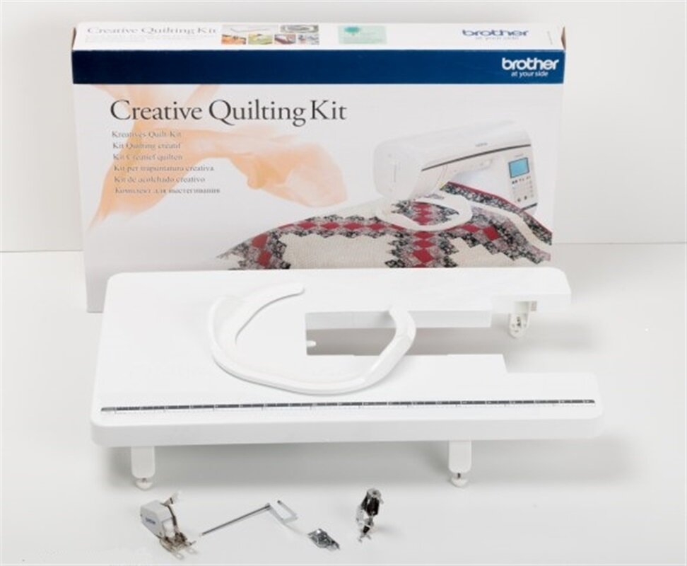 QKF2 Súprava na quiltovanie - Brother NV 1040, 1100, 1300 je špeciálna sada originálneho príslušenstva Brother na quiltovanie. Obsahuje prídavný stolík, rámček, pätky a ďalšie. Určené pre šijacie stroje Brother NV 1040, 1100 a 1300.