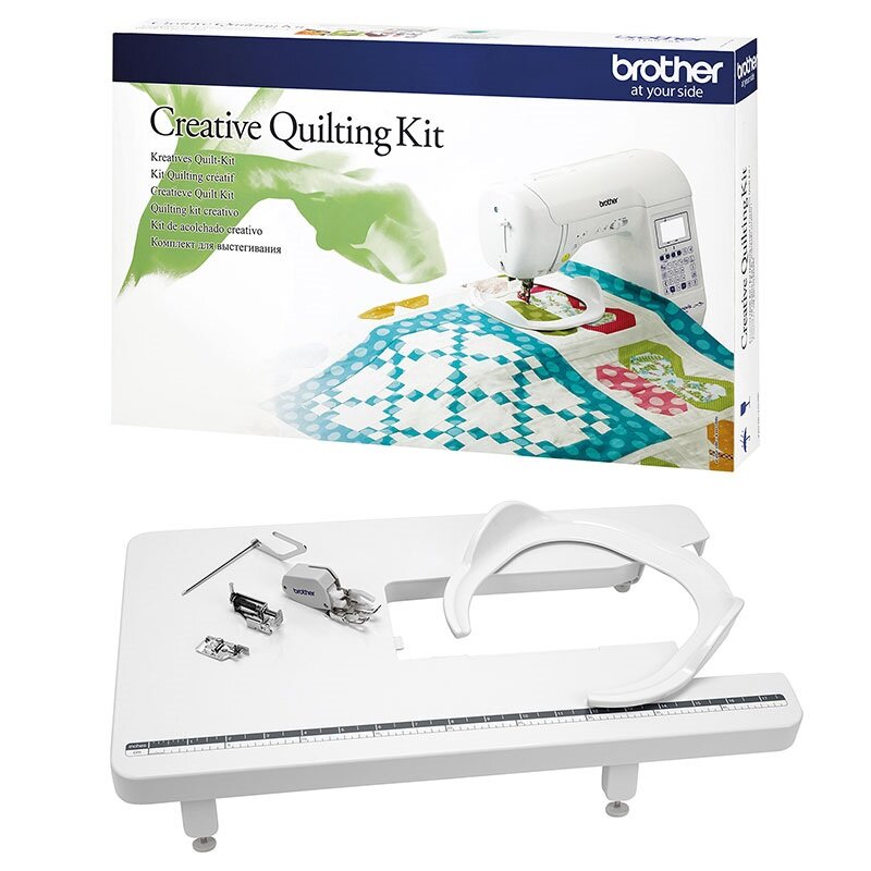 QKF3 Súprava na quiltovanie - Brother F 400, F 410, F 420, F 460 je špeciálna sada originálneho príslušenstva Brother na quiltovanie. Obsahuje prídavný stolík, rámček, pätky a ďalšie. Určené pre šijacie stroje Brother radu F.