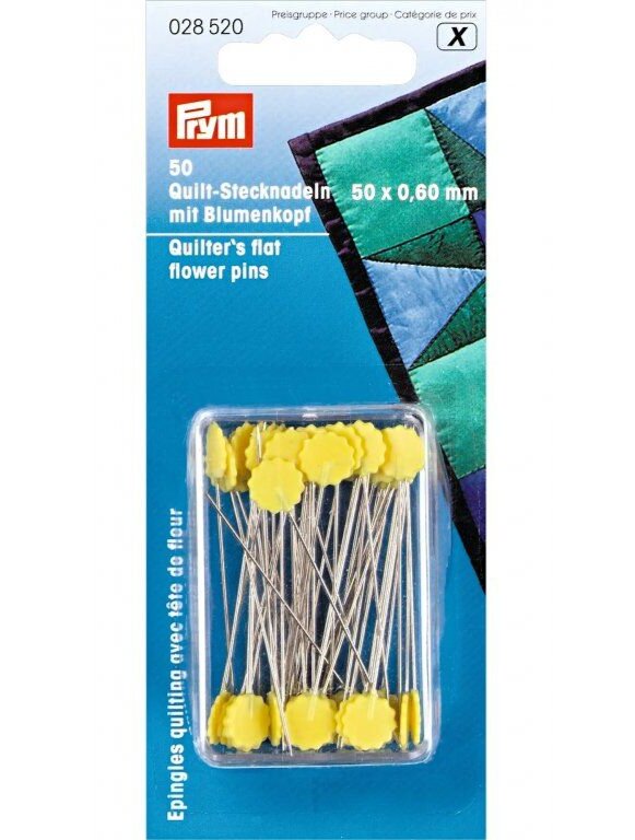 Špendlíky, ktoré sú špeciálne vytvorené na patchwork a quilting. Dlhé špendlíky s plochou hlavičkou vyrobenou zo žiaruvzdorného plastu. Špendlíky sú prispôsobené pre vysoké namáhanie a sú tak veľmi odolné. Majú jemnú špičku, ktorá ľahko prenikne niekoľkými vrstvami látky bez toho, aby sa poškodila látka.