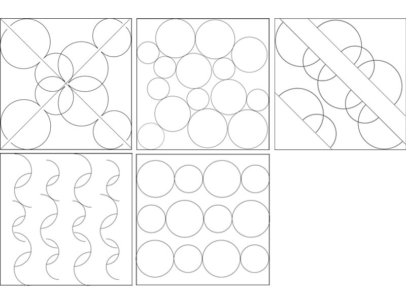 Priemery ušitých kruhov s 1/4 palcovou pätkou: 3 1/2" a 4" (cca 8,9 cm a 10,1 cm)