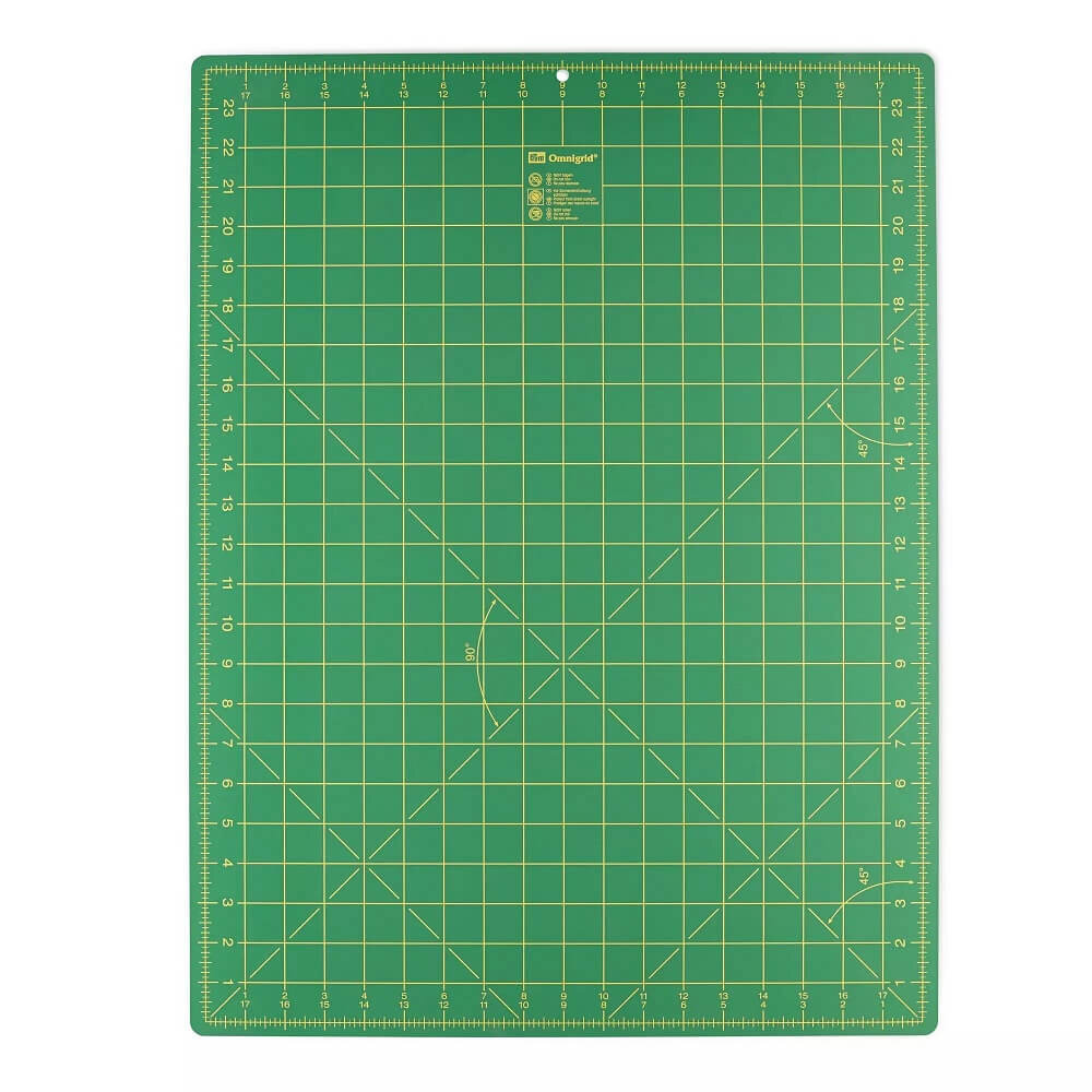 obchod@raj-sitia.skRezacia podložka Omnigrid - PRYM je obojstranná rezacia podložka značky PRYM určená na presné rezanie prevažne látok s rotačným rezačom. Rezacia podložka je ideálnou pomôckou na rezanie látok pomocou rotačného noža a umeleckého skalpelu. Špeciálna rezacia podložka má taký povrch, že nepoškodzuje čepeľ rotačného noža, ale je tiež taký pevný, že sa nôž nezarezáva príliš hlboko a nedochádza k poškodeniu podložky.. Predná strana rezacej podložky je potlačená merítkom v cm, zadná strana merítkom v palcoch, nechýbajú ani uhly. S touto rezacou podložkou je možné pohodlne a bez problémov realizovať aj projekty navrhnuté v palcoch! Pri správnom použití má materiál rezacie podložky vysokú úroveň bezpečnosti proti rozbitiu a odštiepeniu. Podložka má praktické očko na zavesenie.
