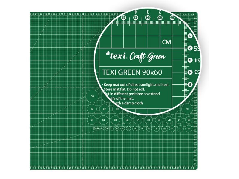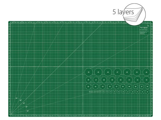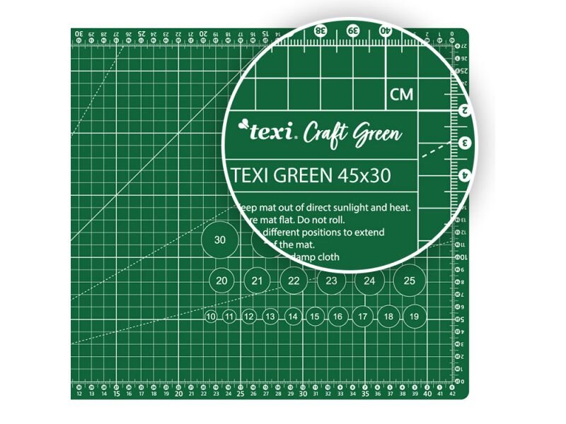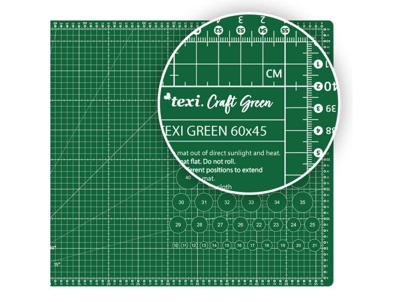 Rezacia podložka TEXI GREEN má 5 vrstiev a je tak skvelá aj na rezanie silnejších materiálov, kde je potrebné vyvíjať väčší tlak. Samosvorná funkcia uzavrie povrch podložky po rezy, čo zaisťuje dlhšiu životnosť podložky. Podložka je odľahčená a jedná sa o veľmi kvalitnú podložku na našom trhu. Na podložke môžete rezať pomocou rezacích koliesok aj skalpelov. Na podložke je vyznačená presná meracia sieť, ktorá je navrhnutá pre pravákov aj ľavákov. Podložka má veľmi kvalitný povrch o hrúbke 3 mm, ktorý zaistí aj dlhodobú ostrosť rezáka. Podložka má typickú zelenú farbu.