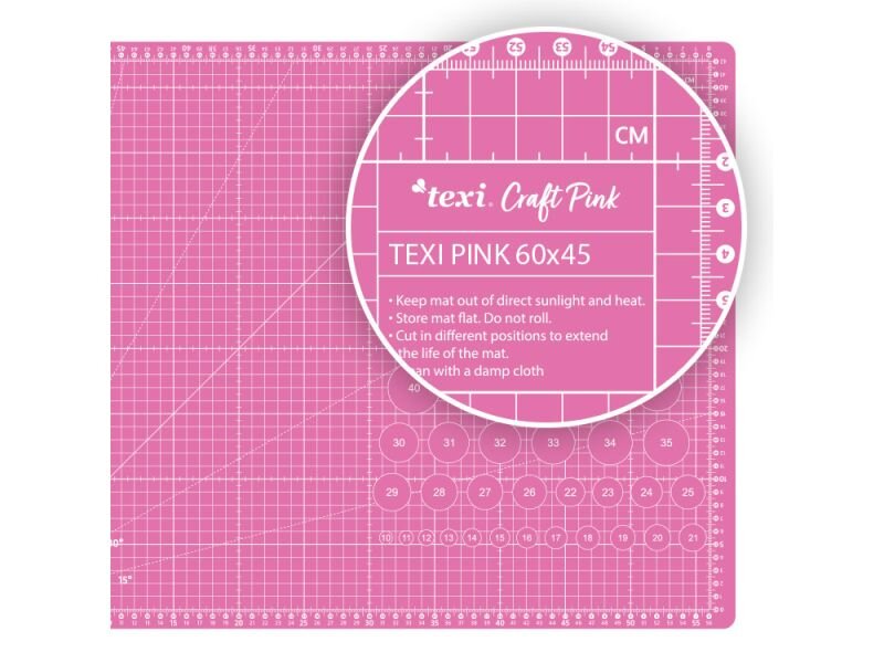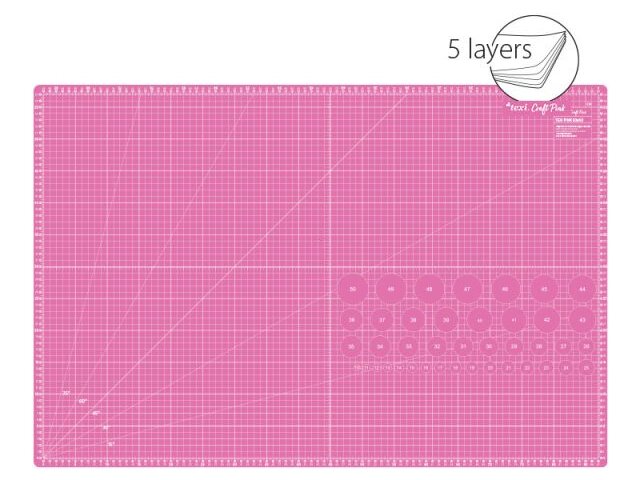 Rezacia podložka TEXI PINK má 5 vrstiev a je tak skvelá aj na rezanie silnejších materiálov, kde je potrebné vyvíjať väčší tlak. Samosvorná funkcia uzavrie povrch podložky po rezy, čo zaisťuje dlhšiu životnosť podložky. Podložka je odľahčená a jedná sa o najkvalitnejšiu podložku na našom trhu. Na podložke môžete rezať pomocou rezacích koliesok aj skalpelov. Na podložke je vyznačená presná meracia sieť, ktorá je navrhnutá pre pravákov aj ľavákov. Podložka má veľmi kvalitný povrch o hrúbke 3 mm, ktorý zaistí aj dlhodobú ostrosť rezáka. Podložka má navyše krásnu ružovú farbu a stane sa tak dizajnovým doplnkom šijacej dielne.