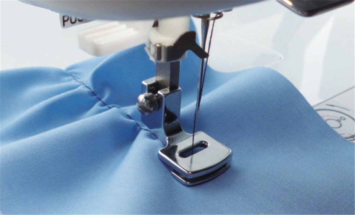 Riasiaca pätka - Juki rad F, G, DX a 350 je voliteľné príslušenstvo, ktoré je možné dokúpiť pre šijacie stroje Juki HZL radu F, G, DX a 350. Pätka umožňuje riasenie.