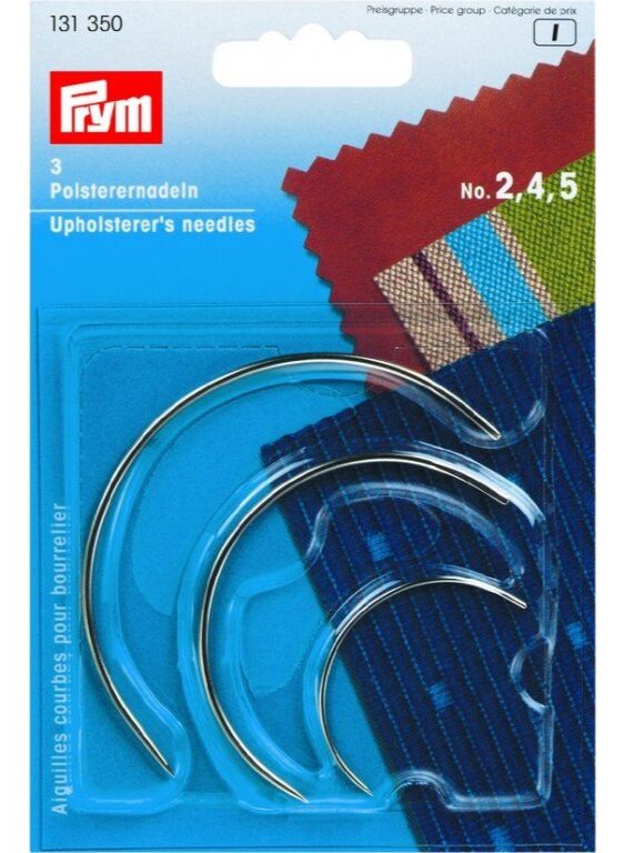 Súprava 3 kusov čalounických ihiel značky PRYM. Ihly rôznych dĺžok na čalúnenie aj v ťažko prístupných miestach.
