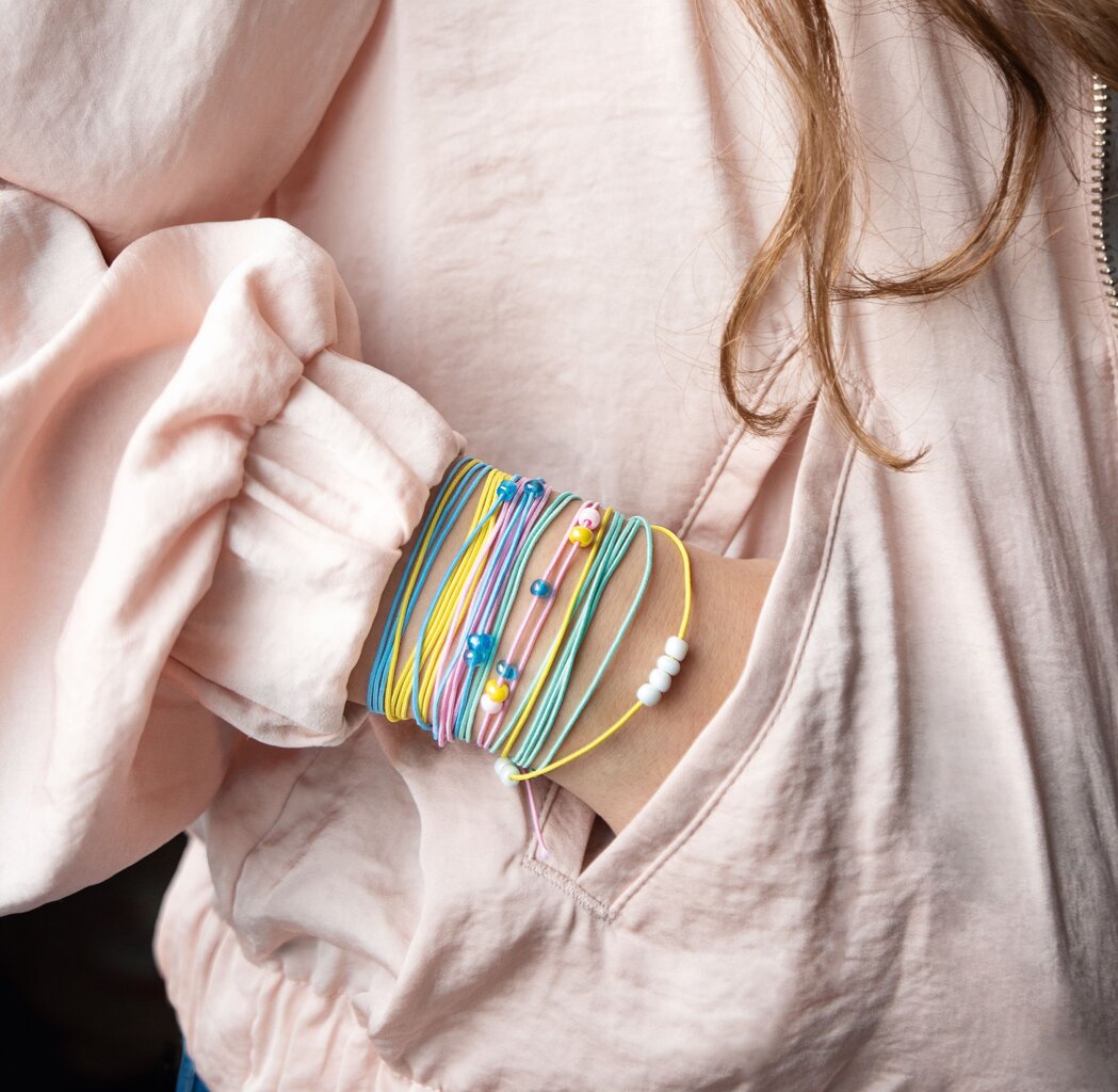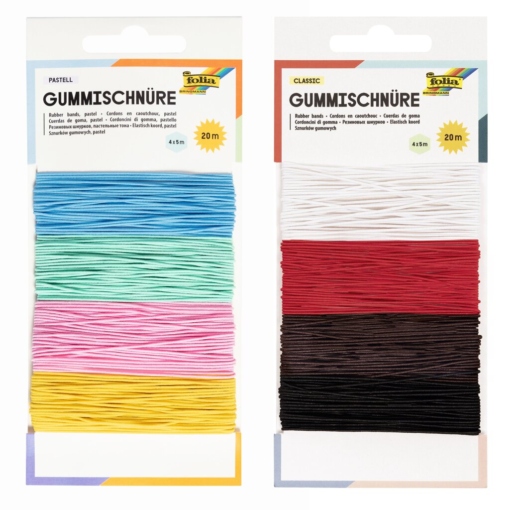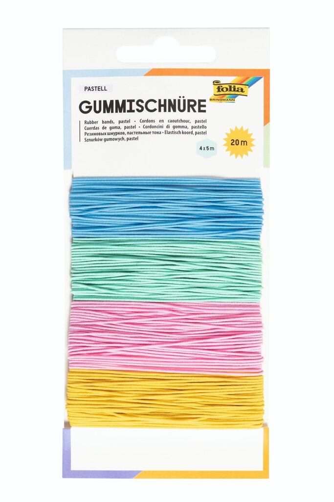 obchod@raj-sitia.skSada gumičiek 4 farieb - 4 x 5 m je určená na kreatívne účely. Upustite uzdu svojej fantázii a vyrobte si náramky, navliekajte korálky, skrátka fantázii sa medze nekladú. Súprava obsahuje celkom 20 m gumičiek. Gumičky sú v 4 farbách a každá farba gumičiek má 5m.