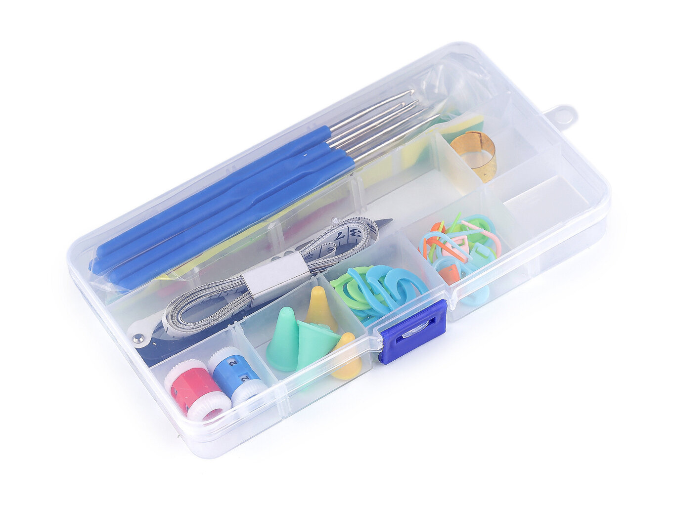 Sada háčků a dalšícj pomůcek na háčkování uložena v plastovém boxu. Vše přehledně uloženo tak, aby Vám už nikdy nic nechybělo.