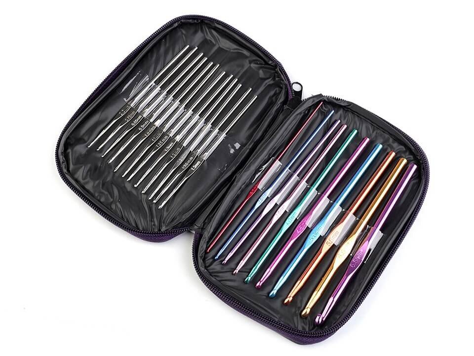 Sada háčků uložená v pouzdře, které má uzavírání na zip. Díky pouzdru už nebudete háčky všude hledat a ztrácet. Všechny háčky pěkně pohromadě. Sadu háčků ocení všichni, kteří rádi háčkují a je skvělá také jako dárek. Háčky o velikostech 0,5 - 1,9 jsou kovové. Ostatní háčky velikostí 2 - 6,5 mm jsou vyrobené z hliníku, který je odlehčený a mají barevné provedení.