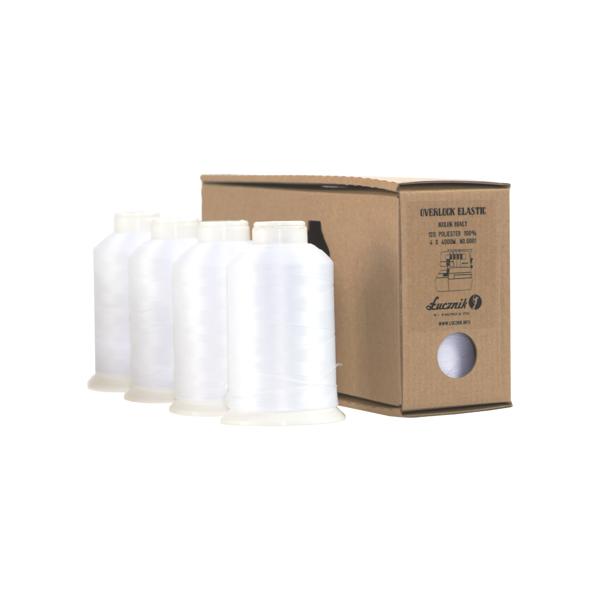 Súprava obsahuje: 4 x 4000 m overlockových chemlonových nití Elastic.