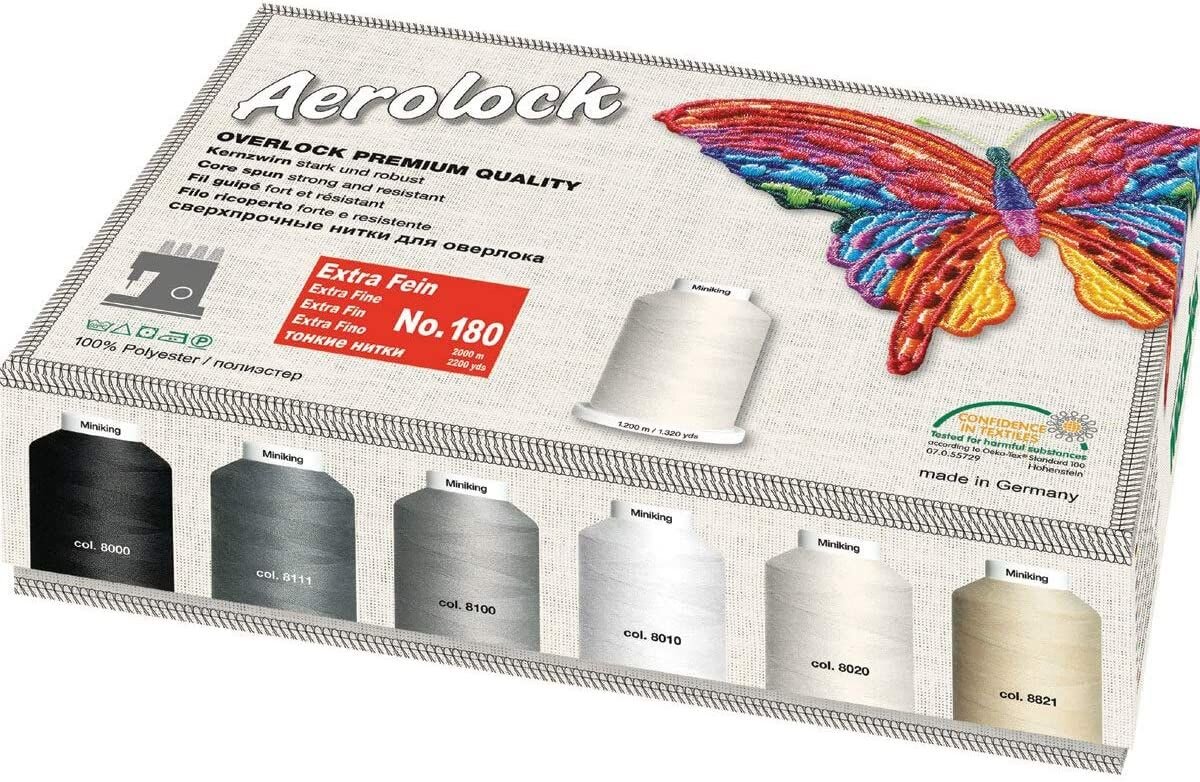 Sada nití PES pre overlocky - Madeira Aerolock 180 (24ks x 2000m) je sada extra jemných nití pre šitie na overlocku či coverlocku. Sada obsahuje 24 kusov nití v 6 farbách.