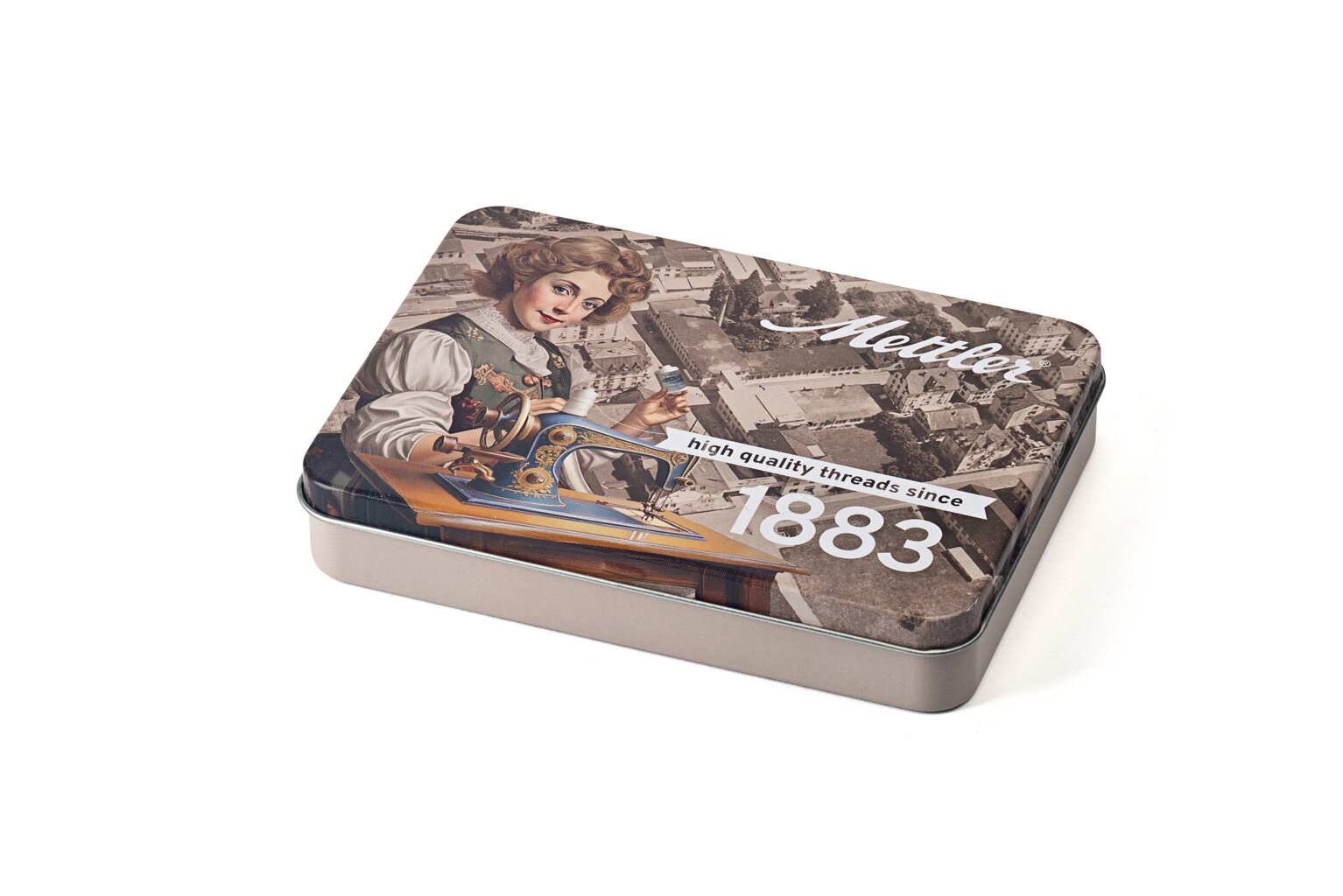 Sada univerzálních šicích nití značky Metller, která je známá svou kvalitou a je součástí německé společnosti AMANN Group. Sada 8 kusů nití v krásné plechové krabičce nostalgia. Kit obsahuje 8 kusů polyesterových nití v nejpoužívanějších barvách a díky plechové krabičce je sada mimořádně skvělá jako dárek.