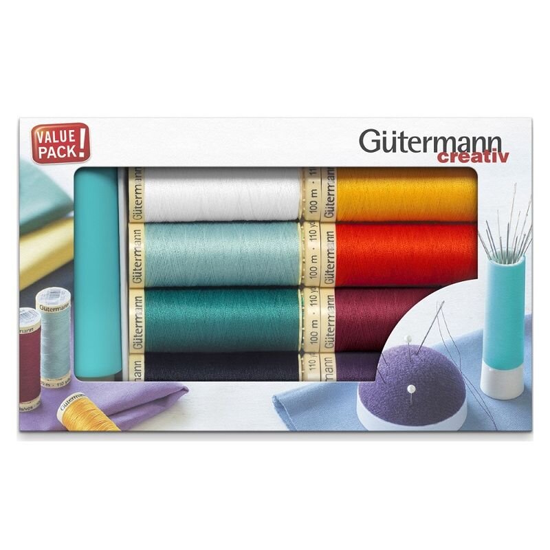 obchod@raj-sitia.skSada šijacích nití PES Gütermann (8x100m) + twister s ihlami Prym
