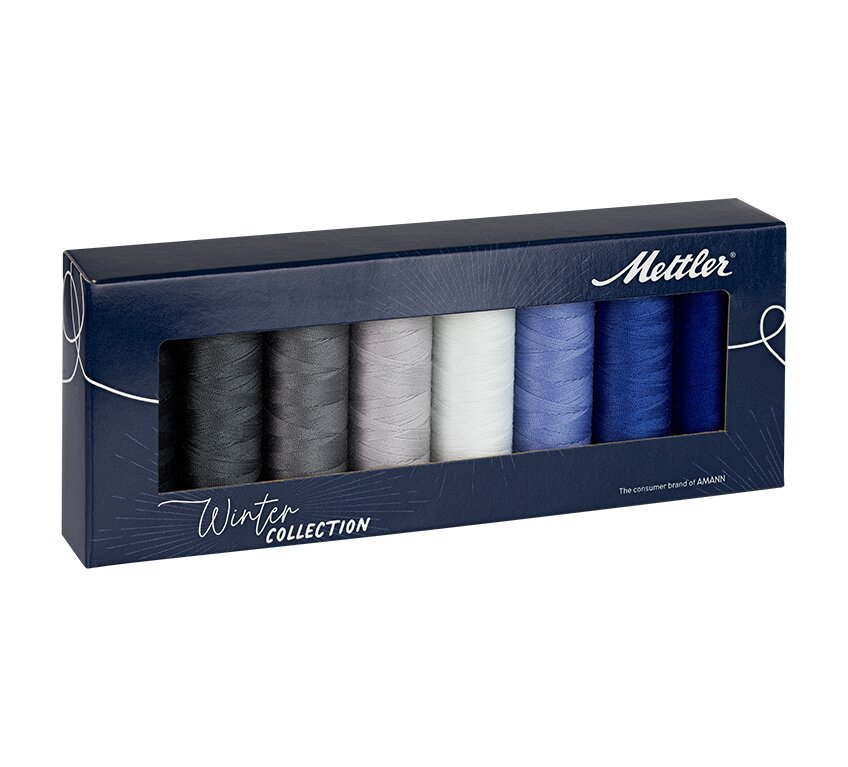 Súprava univerzálnych šijacích nití značky Metller, ktorá je známa svojou kvalitou a je súčasťou nemeckej spoločnosti AMANN Group. Kit obsahuje 8 kusov polyesterových nití v zimných farbách.