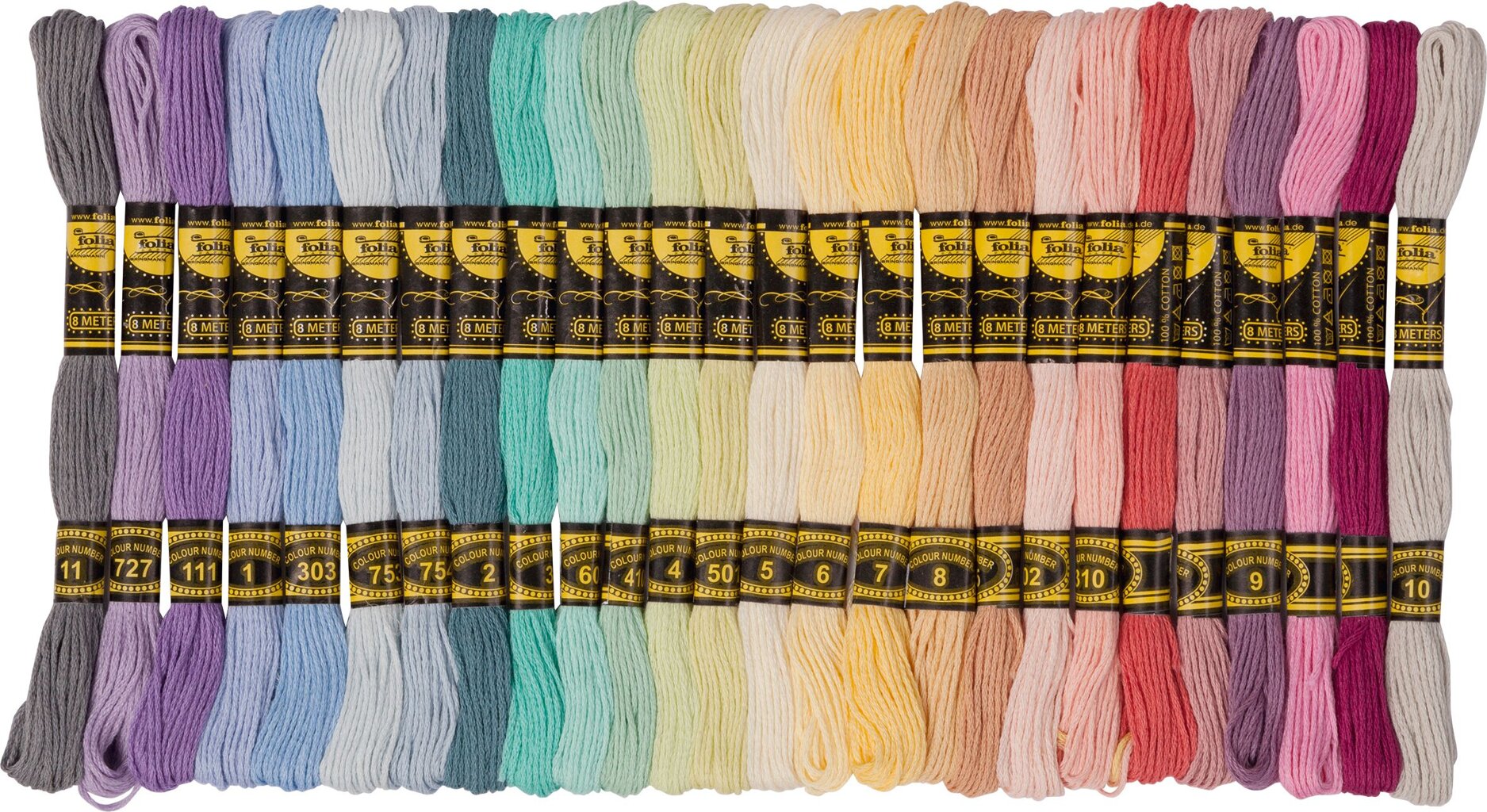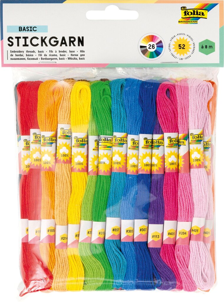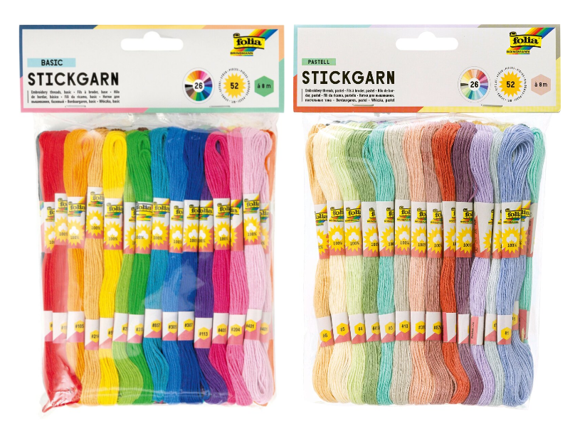 Bavlnky určené pre všetky šikovné ručičky. Súprava obsahuje bavlnky typu mouline v 26 farbách a každá farba sa 2x opakuje, celkom teda 52 bavlniek, každá bavlnka má 8 m.