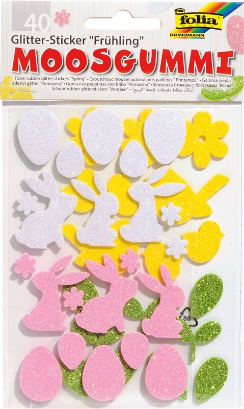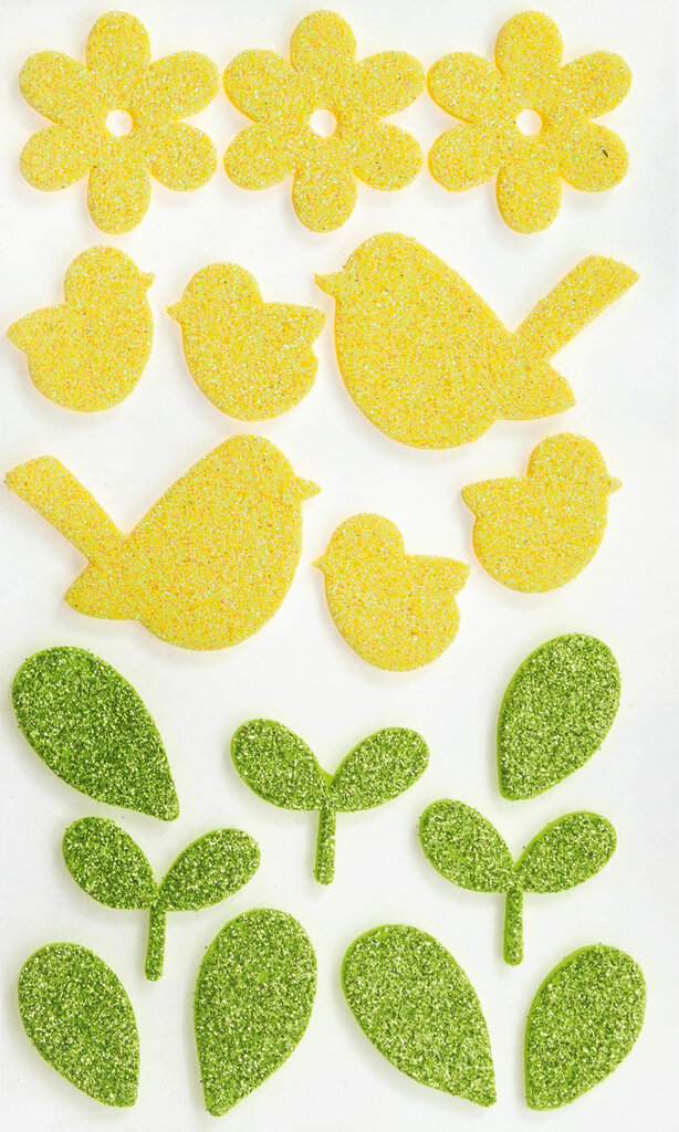 Samolepky z moosgummi - veľkonočné motív. Trblietajúce sa samolepiace nálepky s veľkonočným motívom.