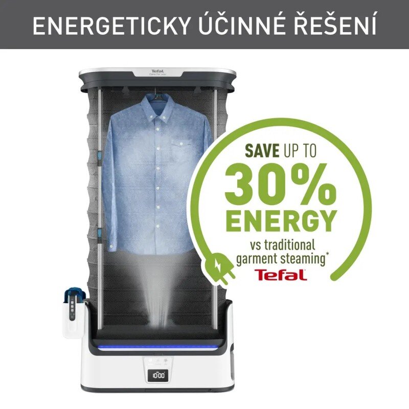 - Oproti tradičním napařovačům vyžaduje Tefal Care for You First až o 30 % méně energie