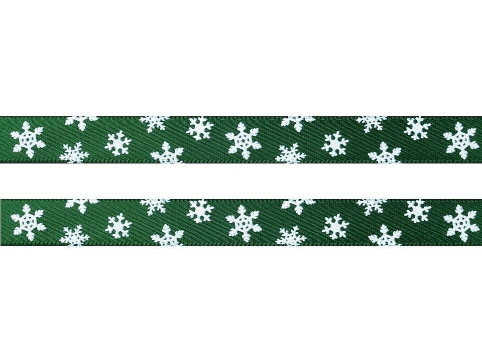 Zelená saténová stuhy s potiskem vloček skvělá pro zimní a vánoční tvoření, balení dárků, šití doplňků. Šíře stuhy 10 mm a prodáváme po 1 metru.