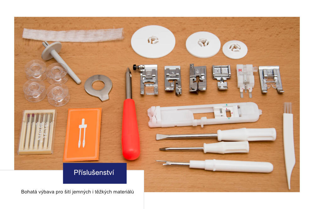 - Osvětlení šicí plochy diodami LED s neomezenou životností