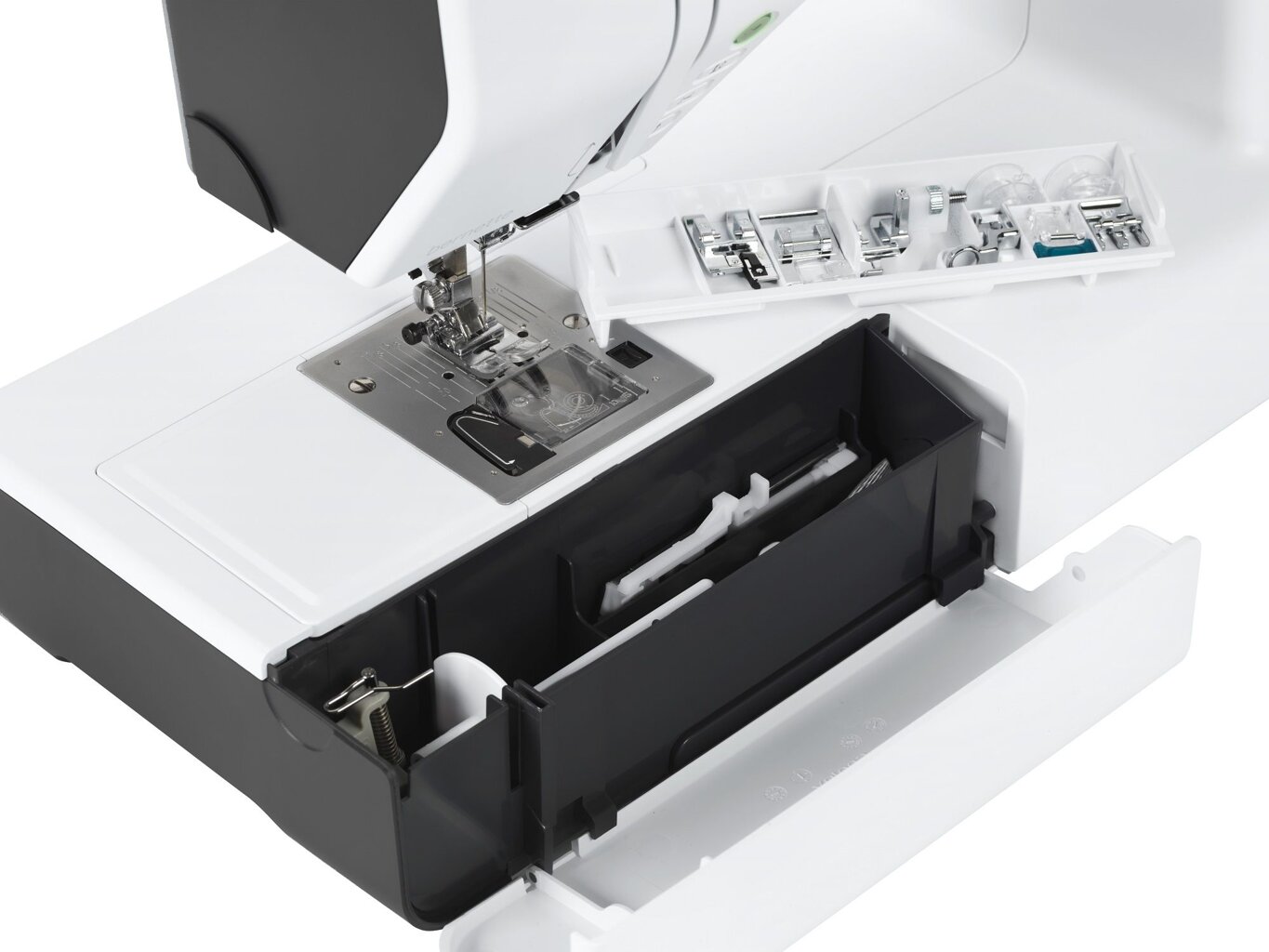 Radi by ste si porovnali tento šijací stroj s funkciami ostatných šijacích strojov predávanými na Raji šitia? Využite náš porovnávač. Nájdete ho vpravo nad týmto popisom. Stačí zatrhnúť kolonku „Porovnať tovar“ pri viacerých šijacích strojoch a zobrazí sa Vám prehľadná tabuľka s porovnaním pre Váš jednoduchší výber.