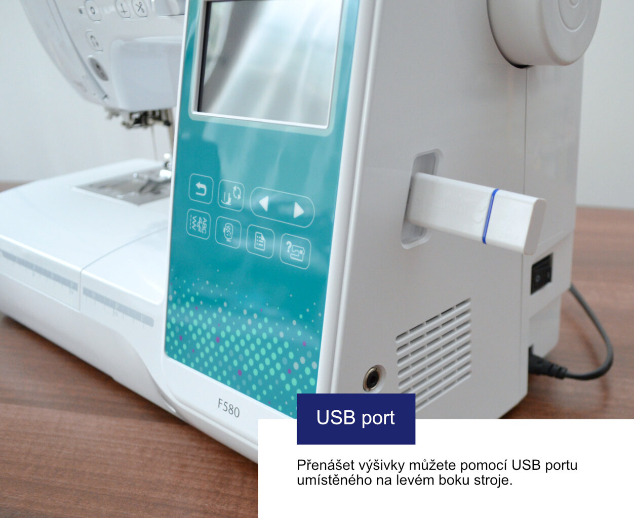 - Vstup pre USB flash disk - prenos výšiviek na USB