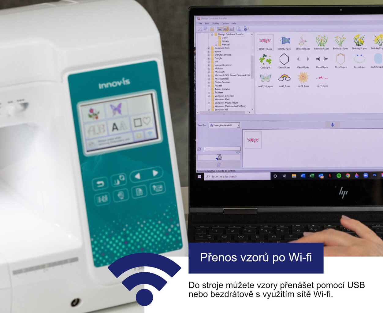 - Prenos vzorov z počítača pomocou Wi-Fi - pomocou programu Free design database transfer pre Windows.