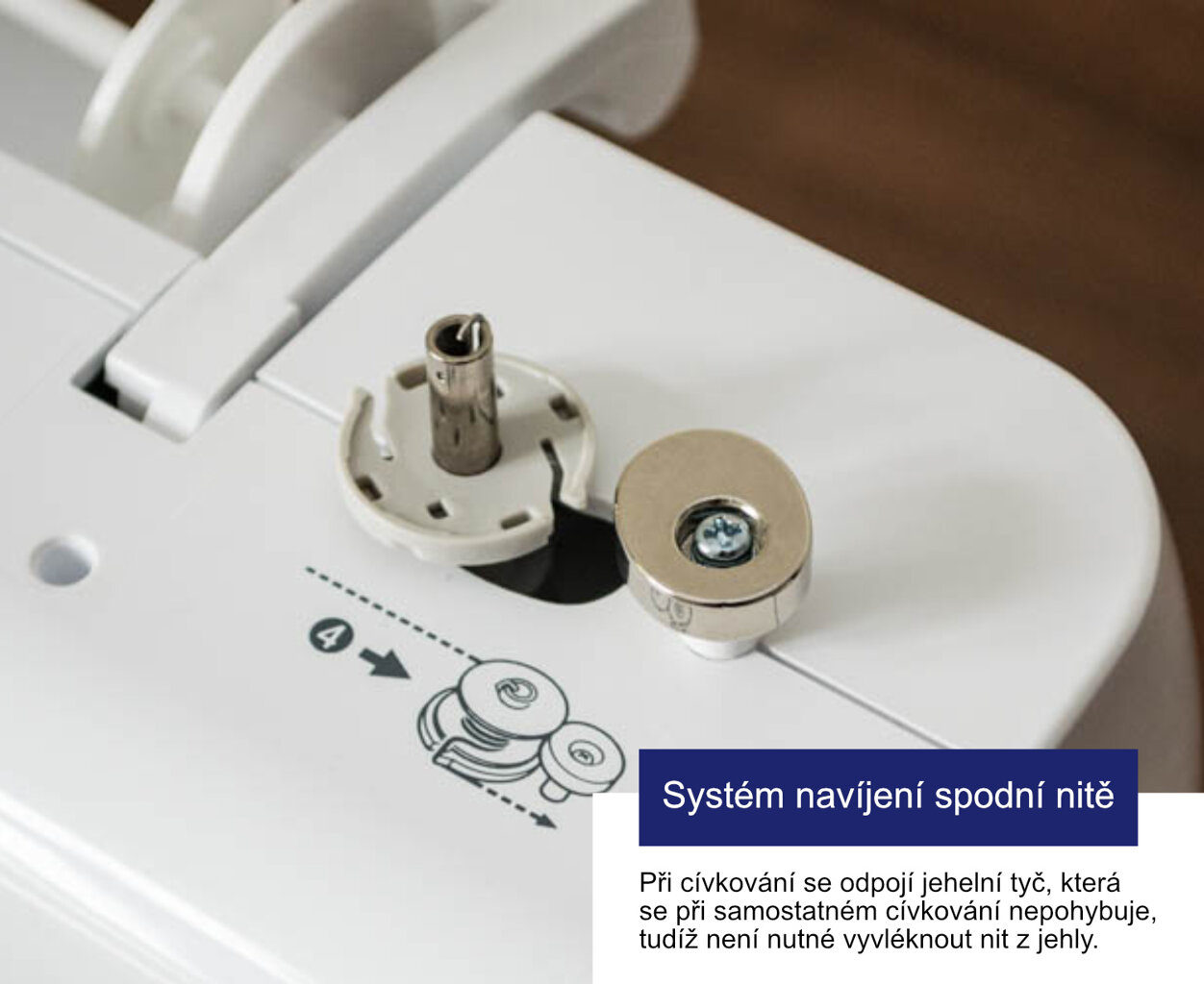 - 4x cievka spodnej nite predvinutá, 1x cievka spodnej nite prázdna (v stroji)