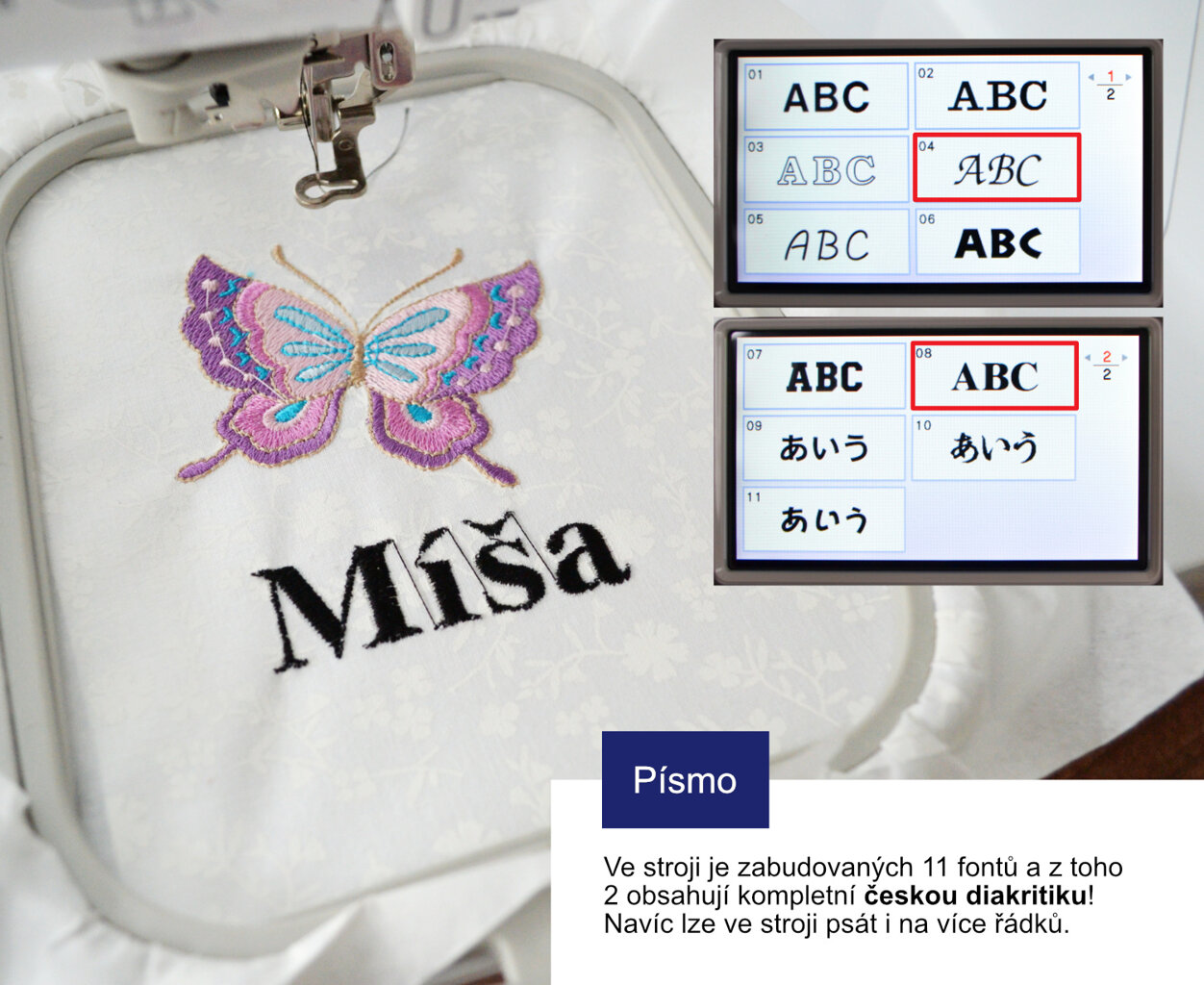 - 181 šijacích stehov a 4 fonty písma na šitie