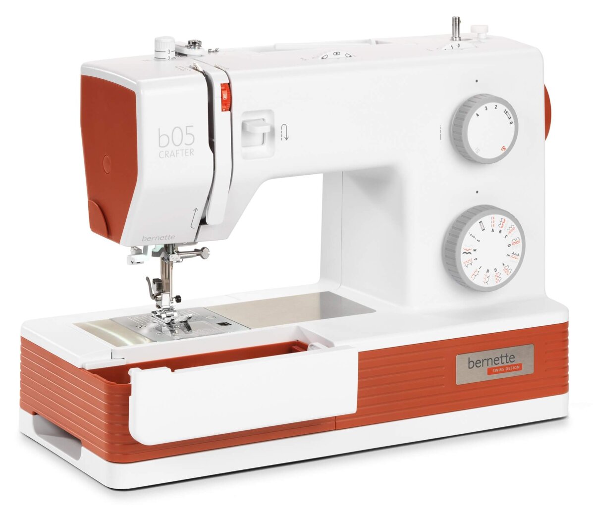 Šijací stroj Bernette b05 CRAFTER je mechanický šijací stroj na domáce použitie, ktorý ponúka možnosť šitia dvoma rôznymi rýchlosťami. Šijací stroj má 30 šijacích programov, rotačný chapač, poloautomatický navliekač ihly, voľné rameno, automatic