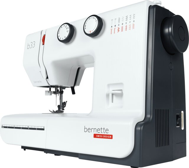 Šijací stroj Bernette b33 je mechanický šijací stroj na domáce použitie. Šijací stroj má 15 šijacích programov, kyvný chapač, poloautomatický navliekač ihly, voľné rameno, 4-krokovú gombíkovú dierku a robustnú kovovú konštrukciu.