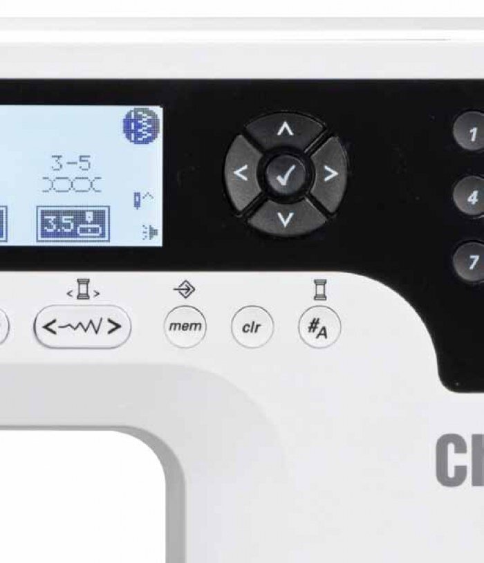 Šijací stroj Bernette Chicago 5 je cenovo dostupný elektronický šijací stroj na kreatívne šitie. Prehľadný dotykový displej, 210 typov stehov vr. 2 abecied a 100 dekoratívnych vzorov.