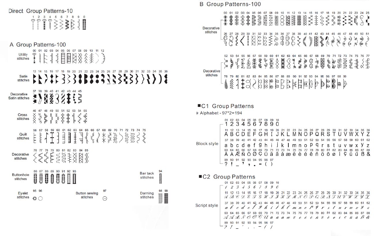 - Pamäť na ukladanie stehov do 4 pamätí stroja (20 miest v každej pamäti)