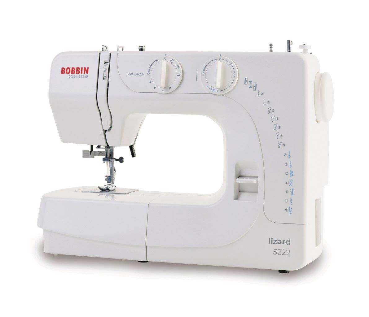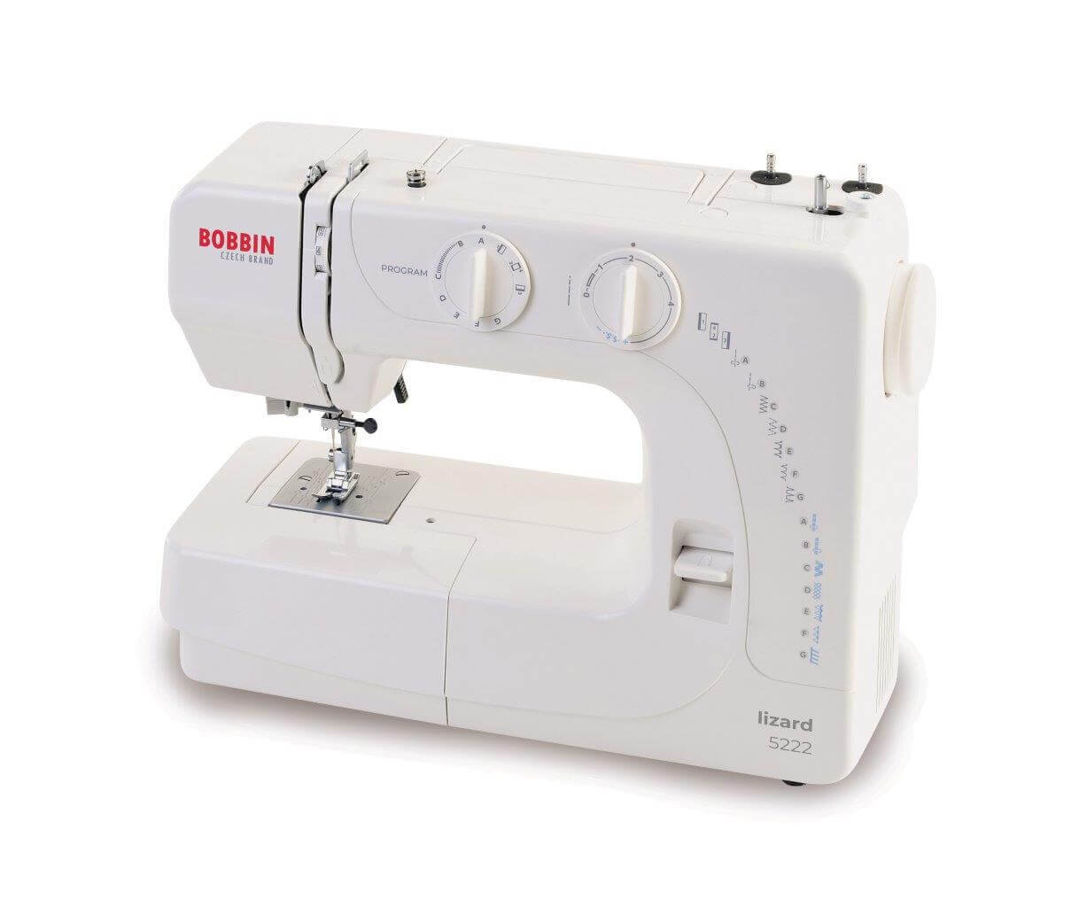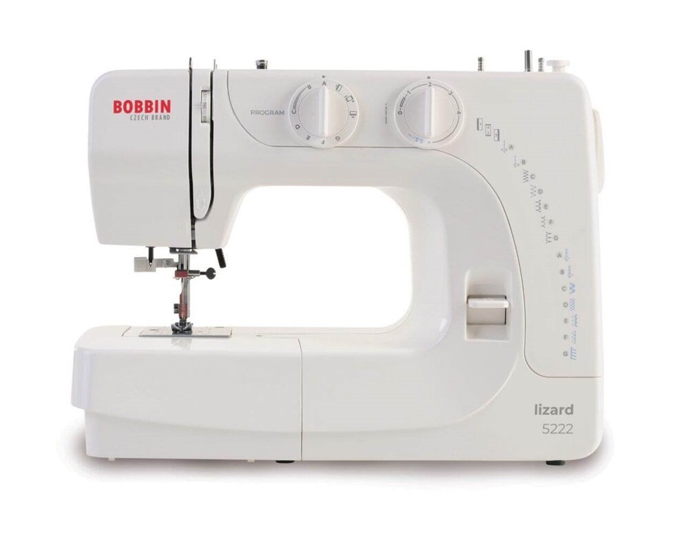 Šijací stroj Bobbin Lizard 5222 ponúka svojim užívateľom 15 šijacích programov, stáva sa tak jednoduchším variantom modelu Lizard 5228. Medzi hlavné prednosti tohto šijacieho stroja patrí úzke voľné rameno, integrovaný navliekač nite do ihly, 4-kroková gombíková dierka, nastaviteľná dĺžka. vrstiev látky a ľahký výber stehov pomocou kolieska.