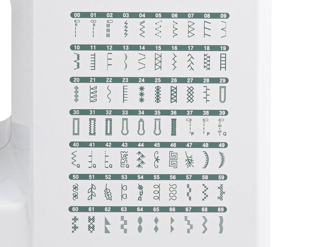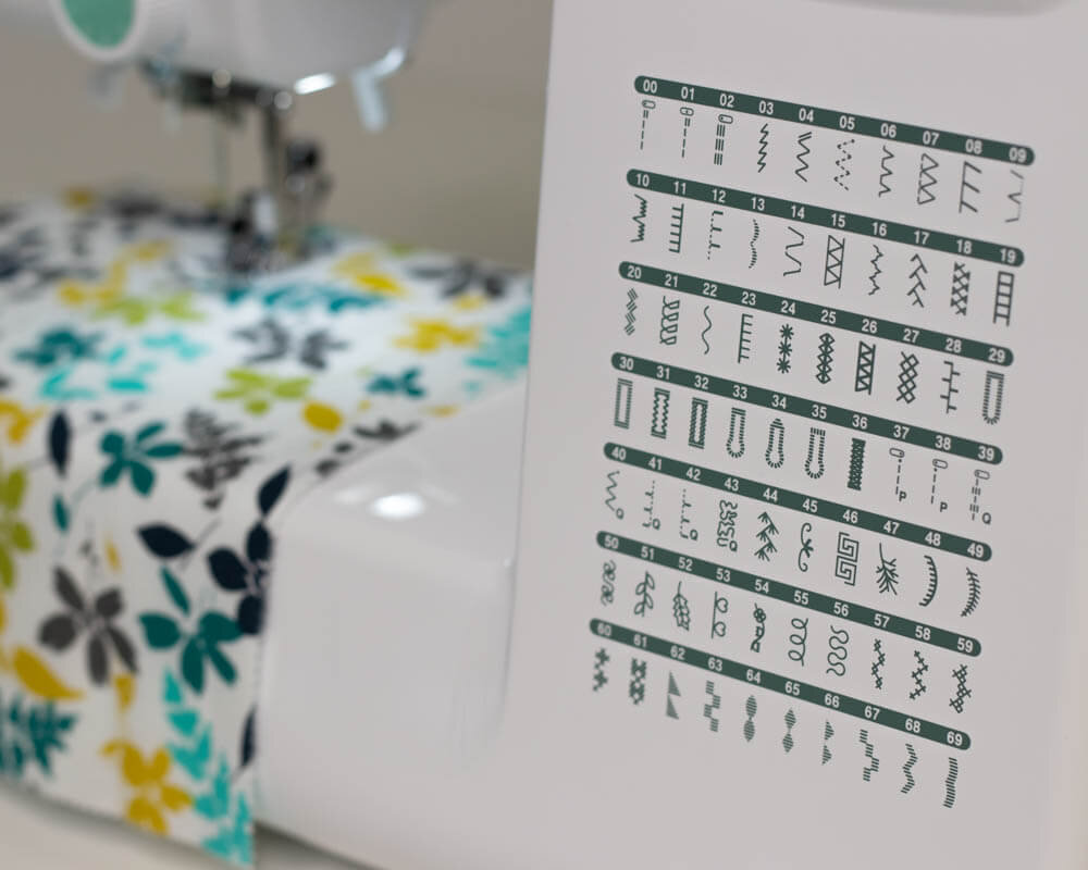 - Informačný LCD display - ukazuje vybraný steh, odporúčanú pätku pre daný steh, dĺžku a šírku stehu