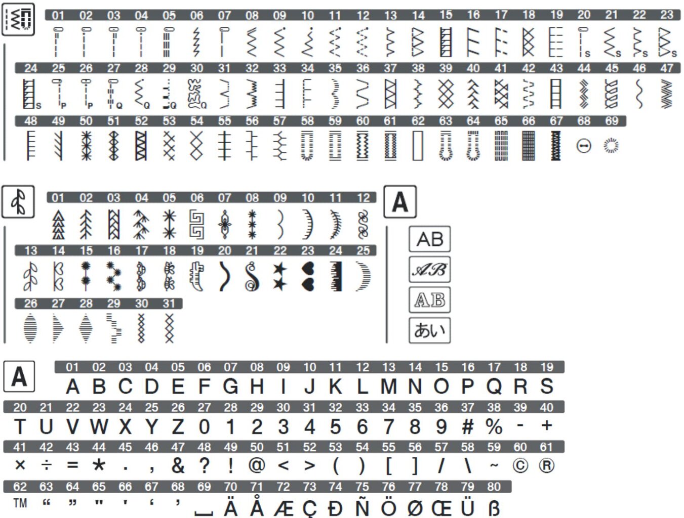 Hlavné funkcie pre šijací stroj Brother F 410:
