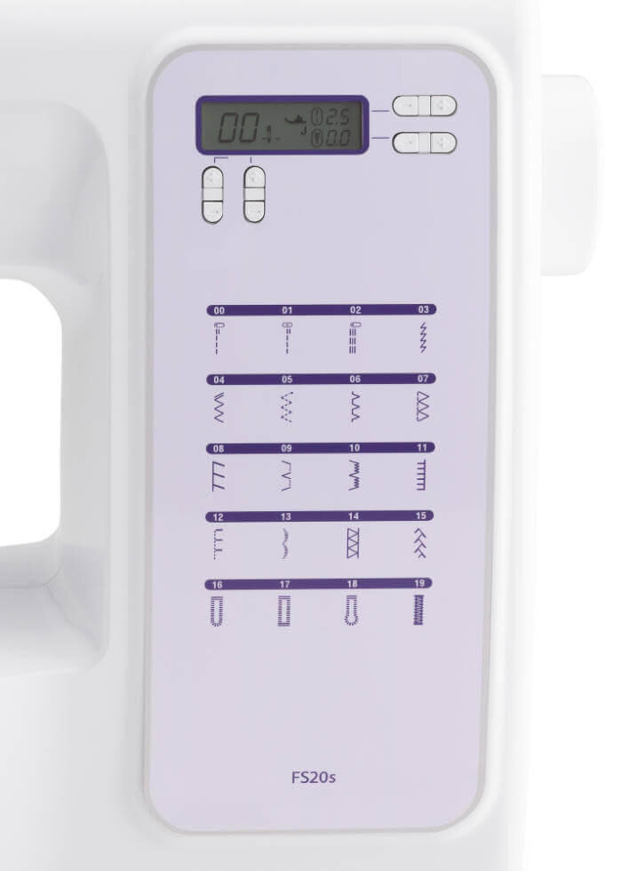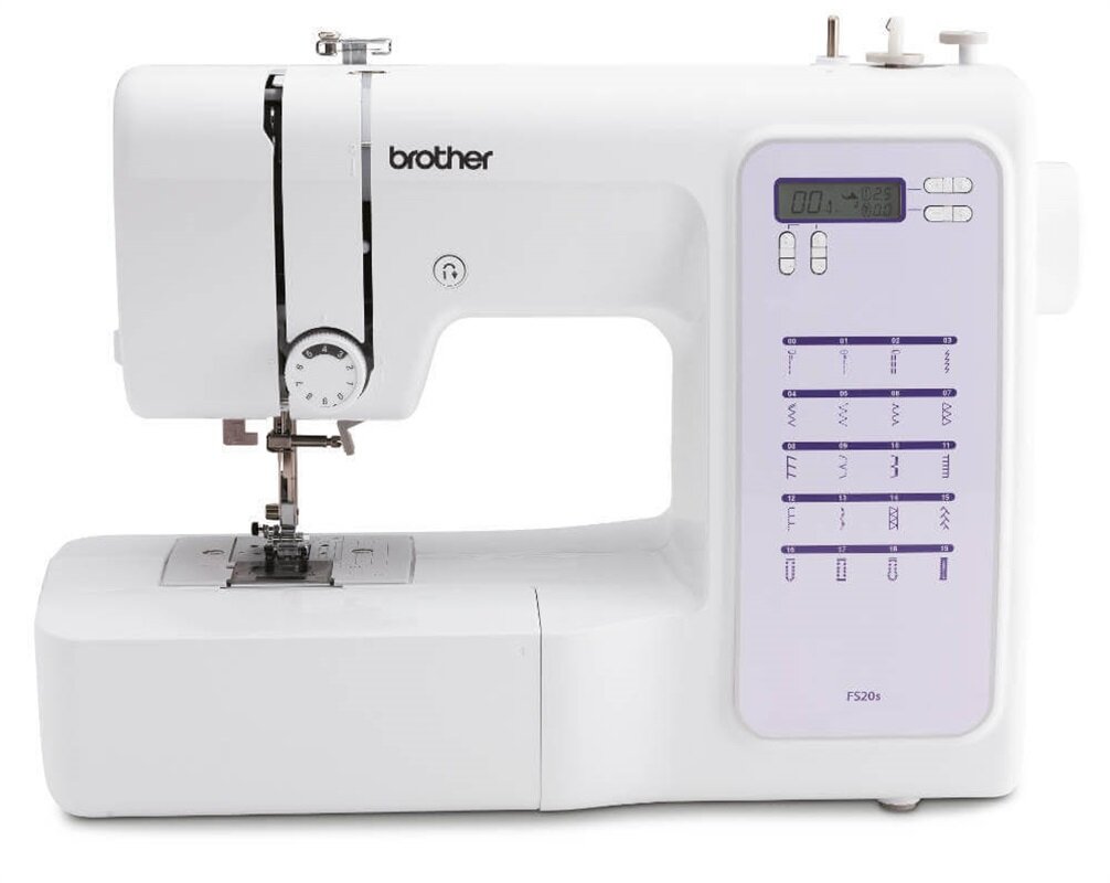 Elektronický šijací stroj Brother FS20S majú horizontálny rotačný chapač, voľné rameno, LCD displej, 20 šijacích programov, 3 druhy automatickej gombíkovej dierky. FS 20 s jednoduchým ovládaním ocenia aj začiatočníci.