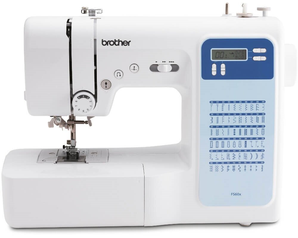 Elektronický šijací stroj Brother FS 60 majú horizontálny rotačný chapač, voľné rameno, LCD displej, 60 šijacích programov, 7 druhy automatickej gombíkovej dierky. FS 60 s jednoduchým ovládaním ocenia aj začiatočníci.