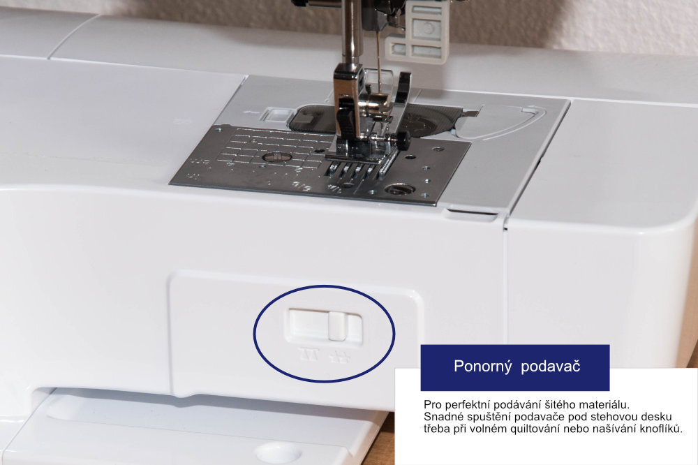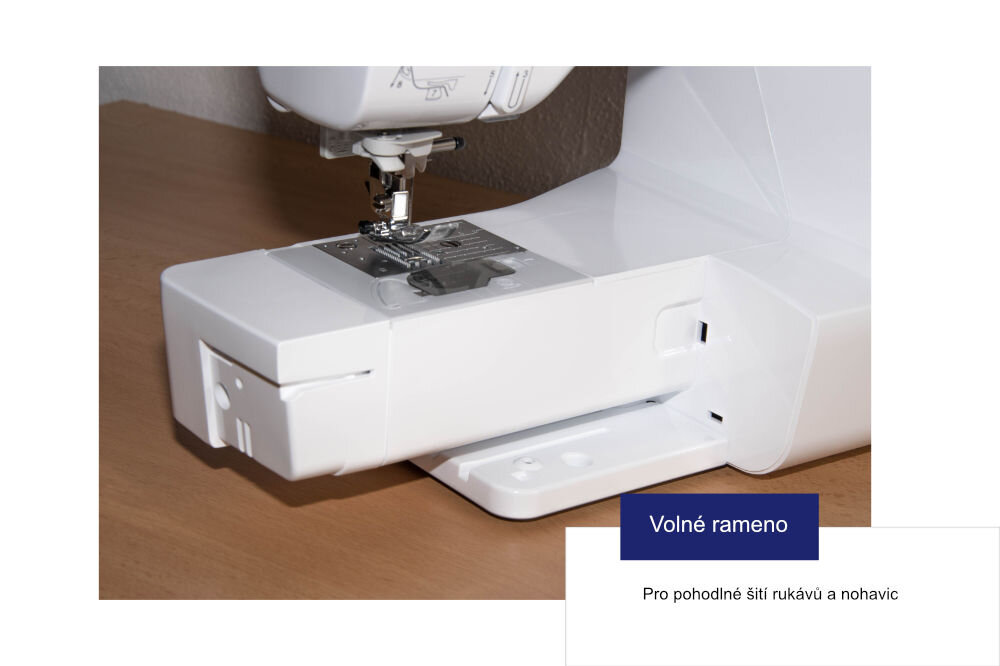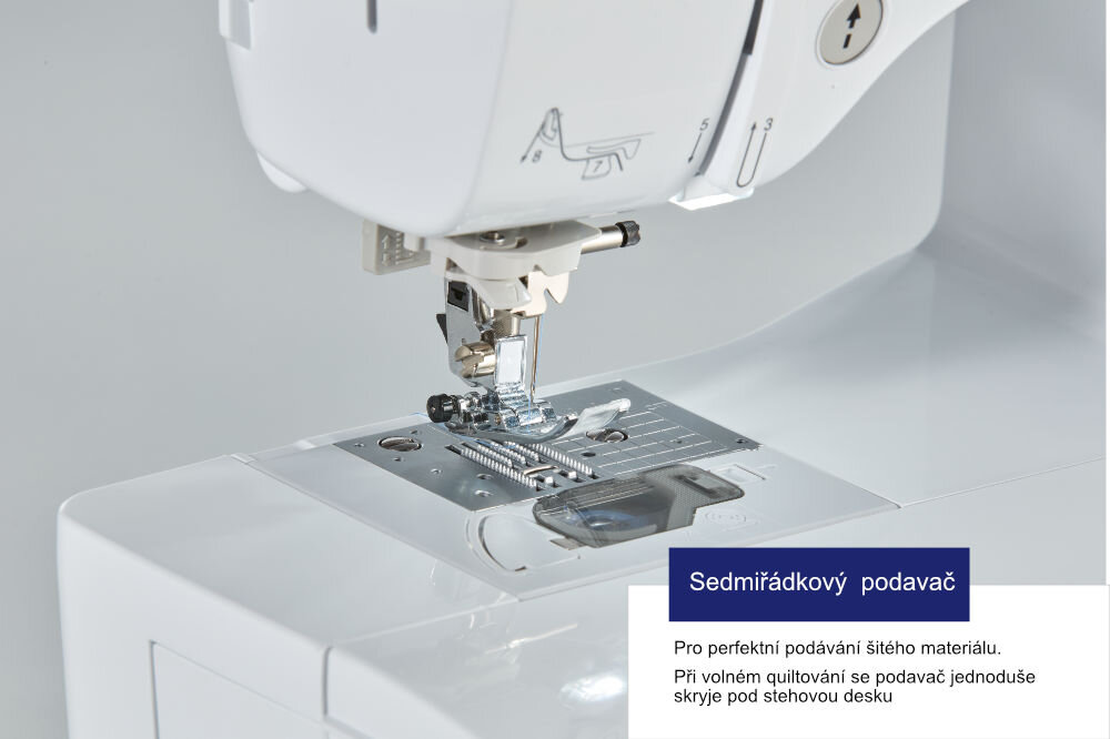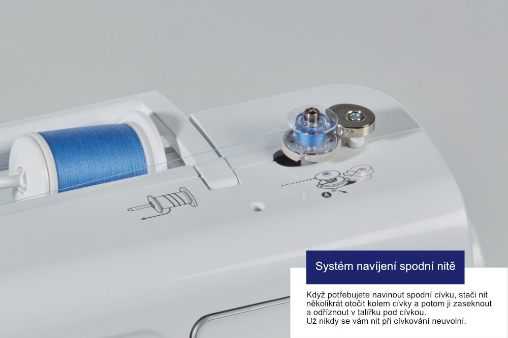 - Displej LCD o veľkosti poskytuje informácie o šijacích parametroch - informácie a hlášky sú kompletne v slovenskom jazyku!