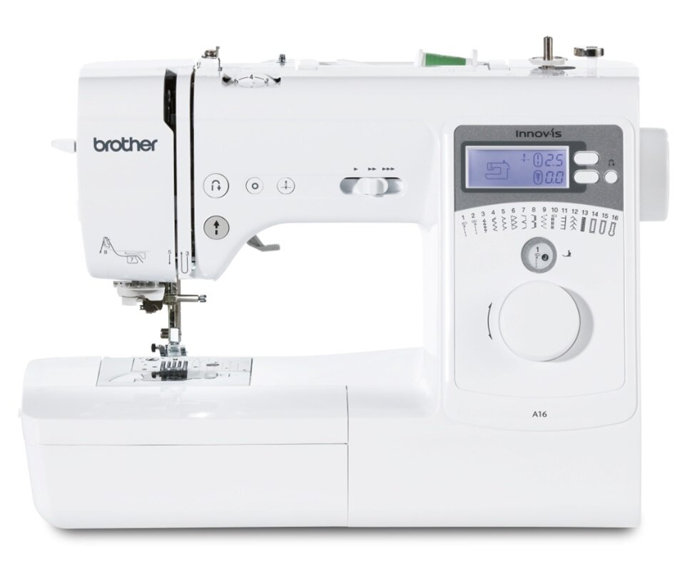 Dôležité vlastnosti: Tento šijací stroj má robustnú konštrukciu, horizontálny rotačný chapač, voľné rameno, LCD displejom a 16 programov. Šijacie stroje Brother A 16 sú ďalej vybavené LCD displejom, ktorý udáva informácie o šírke a dĺžke stehu, osvetlením šijacej plochy, 7 dielnym podávačom a radom iných užitočných funkcií.