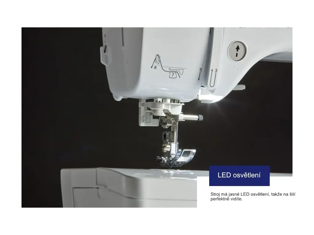 - Osvetlenie šijacej plochy diódami LED s neobmedzenou životnosťou